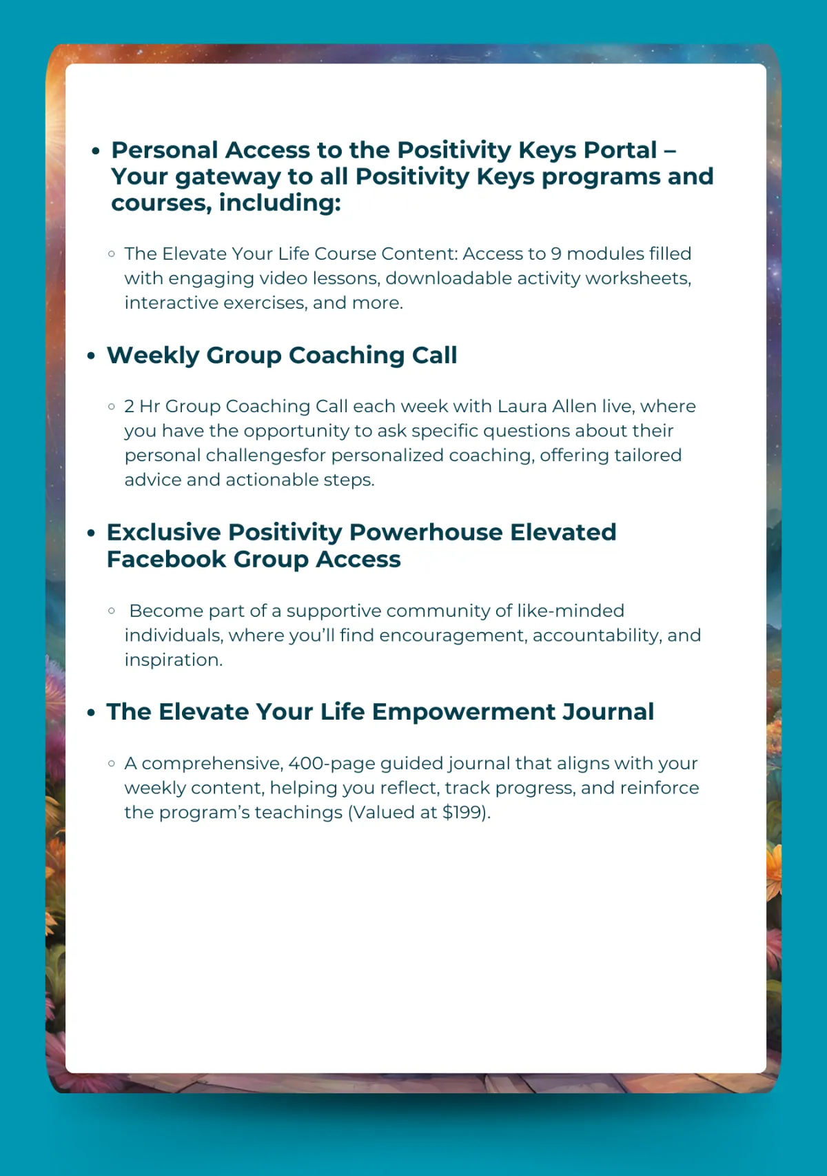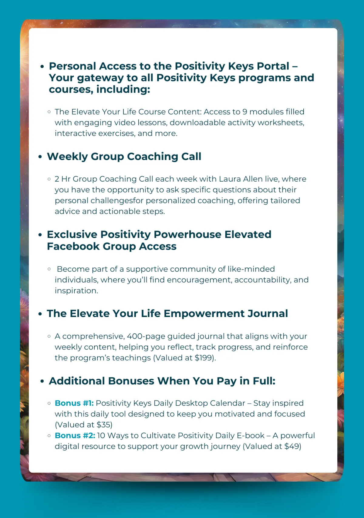 Join the Elevate Your Life: The Positivity Keys to Transform Your Future 9-Week Program
